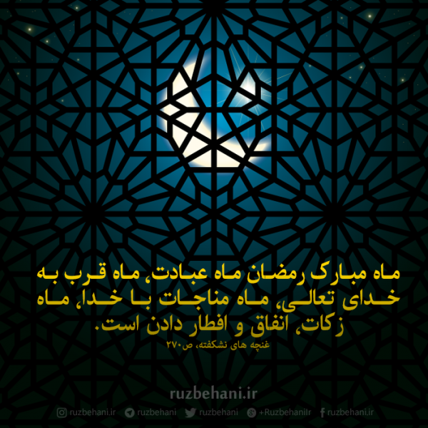 ماه مبارک رمضان ماه عبادت، ماه قرب به خداى تعالى، ماه مناجات با خدا، ماه زکات، انفاق و افطار دادن است.